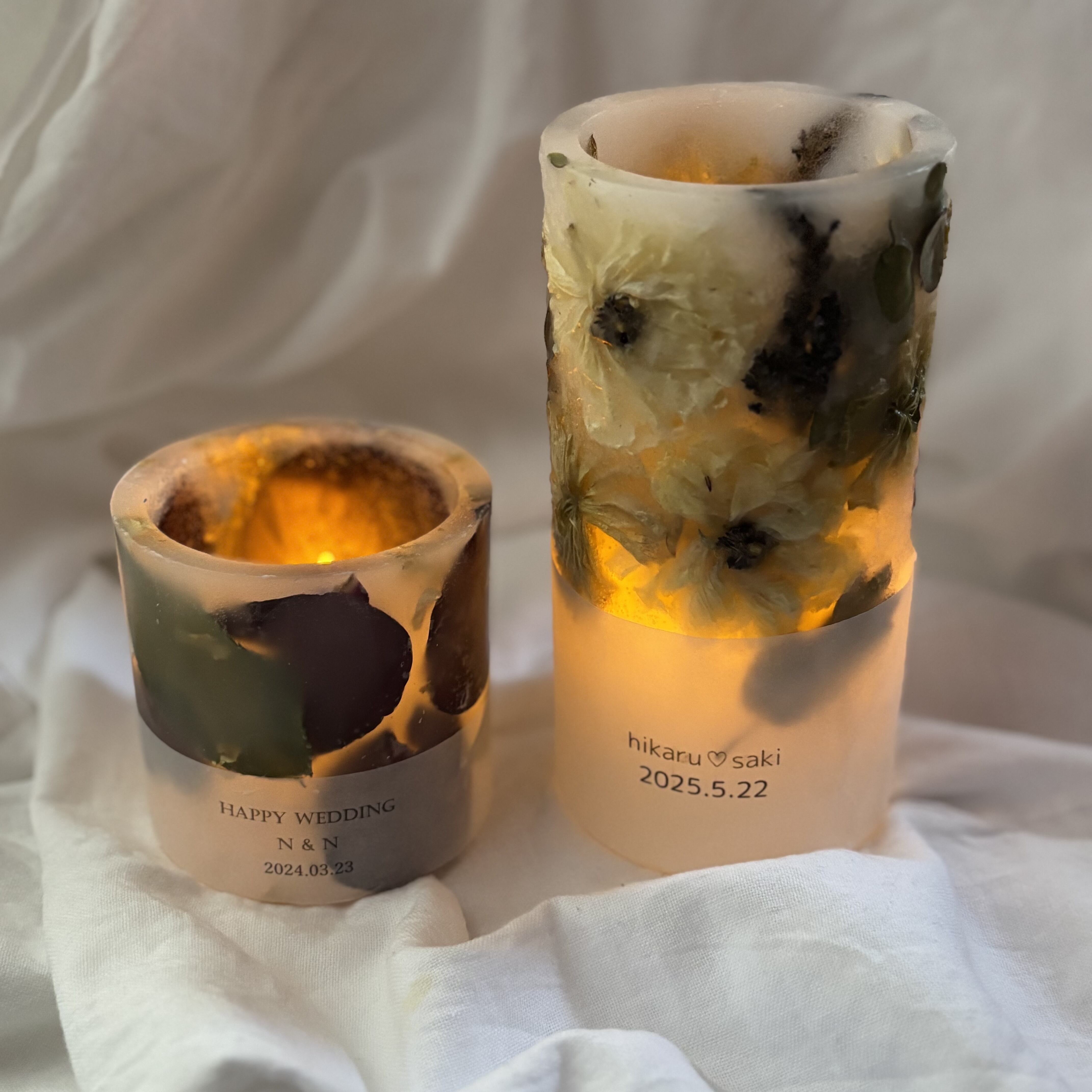 二つの花束があり、別々の内容のキャンドルを希望される場合は、花束ごとにご注文をお願い致します。